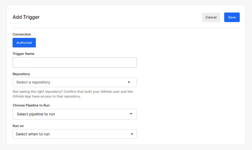 - Select when you want to run your pipeline, I recommend selecting the "Pushes to default branch" option.