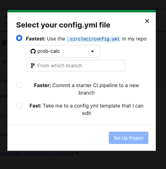 After clicking on the Set up a project tab, you will be redirected to a page where you can select the repository you want to connect to CircleCI. Choose the desired repository and click on the Set Up Project