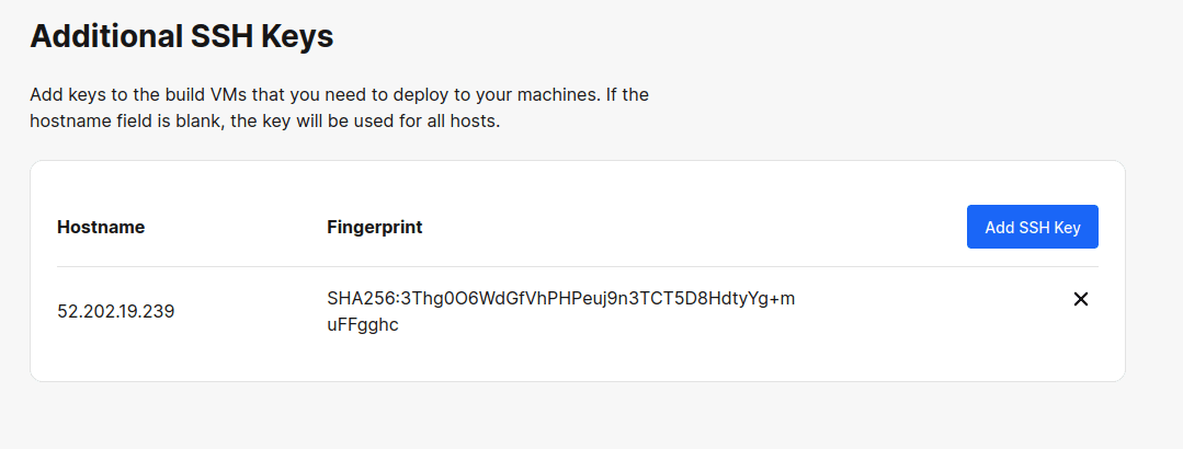 Here you can create SSH keys that will be used in your pipeline. You can create as many SSH keys as you want.